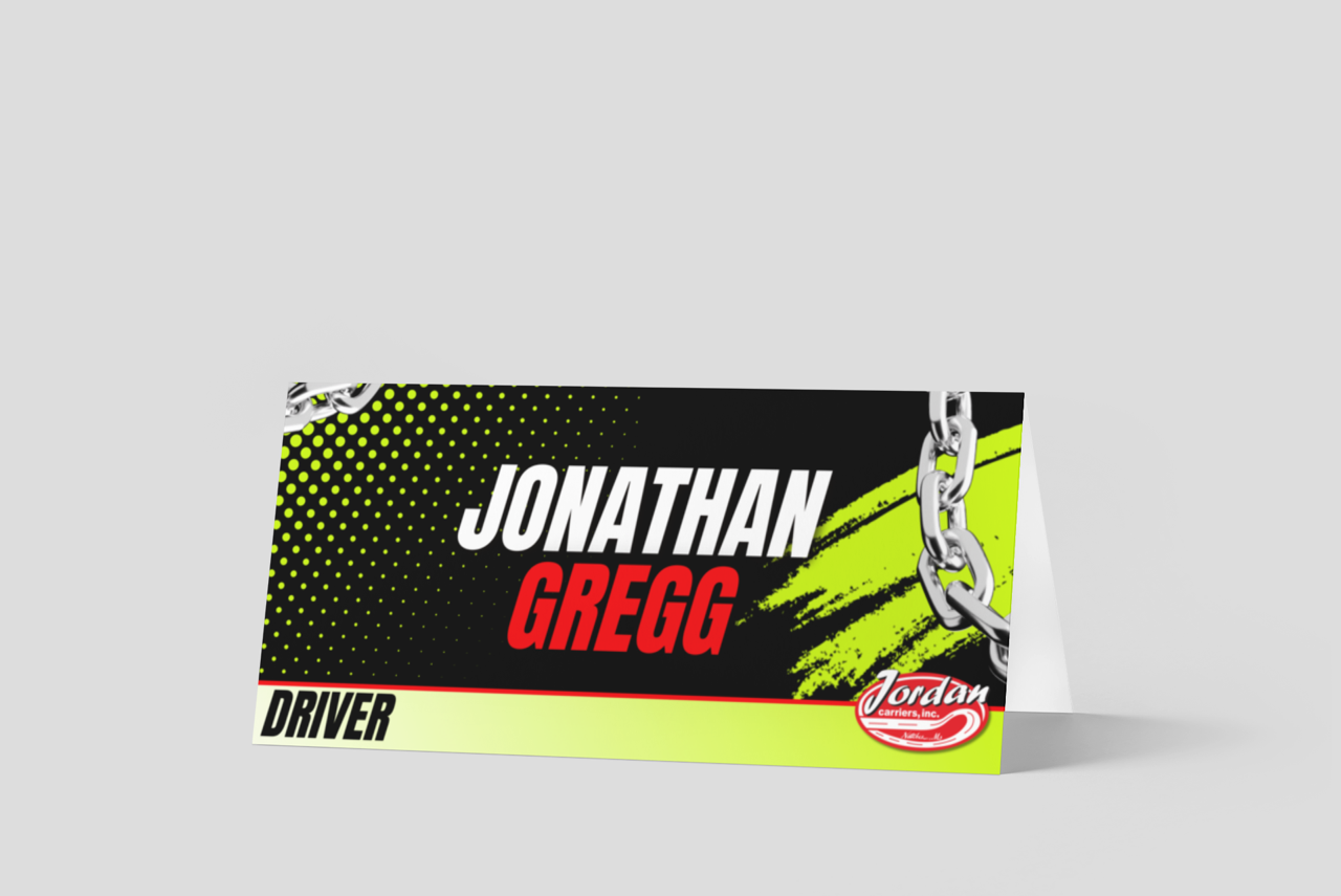 While working at Jordan Carriers, I assisted with several mailouts sent to over approximately 800 drivers once a month. I designed T-shirts to be included in these mailouts, as well as cards to accompany the other materials we sent out.