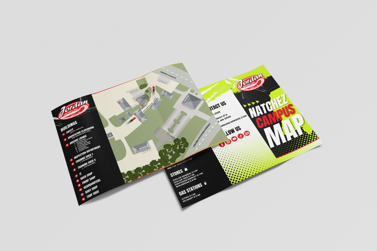 I rebranded the orientation classroom materials to ensure they were updated and cohesive. This rebranding included the orientation manual, T-shirts, name tent cards for the desks, PowerPoint presentations, and a Natchez campus map to help potential drivers familiarize themselves with the area during orientation.